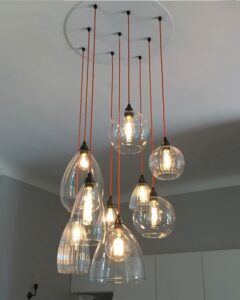 For a more exciting look, opt for pendants featuring an accent, such as the Wellington Clear Glass Pendant light, whose elegant shape makes the simple glass shade sophisticated and edgy. For a truly modern statement which is sure to make an impression, try using cluster pendant lights together over the counter – the Herefordshire Staged Pendant Chandelier, for instance, features a cluster of glass shades hung at different heights.