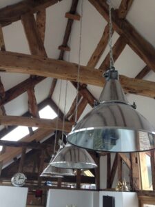 Add pizzazz to your kitchen with a coloured pendant, like the quirky Converted Gramophone Trumpet Pendant, which you can even match with your backsplash for a truly uniform décor.