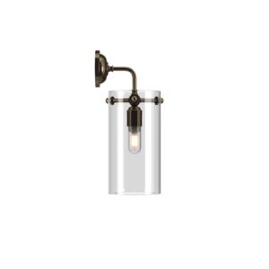 Clear glass Sellack, featured on a antique brass contemporary bathroom wall light.