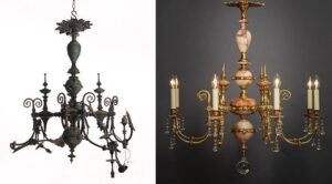 Presented with an old dilapidated box filled with broken parts, crystal wrapped in ancient newspaper and a stem of a light that has more cobwebs around it than the rotten shed at the bottom of the garden, does not put James and Margs off – not one little bit, because they have seen just about every type of light fitting, in just about every type of condition!