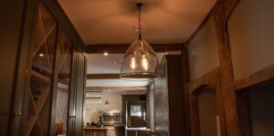 Nestled in the beautiful Hereford countryside, The New Inn boasts a gorgeous restaurant, serving a delicious modern British menu. The interior is decorated with furniture of warm yellow and orange colours, with plenty of exposed natural wood beams to add to the authentic, rustic feel. When Fritz Fryer were approached to provide the lighting, our sales team suggested lighting that would best suit the style of the restaurant.