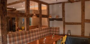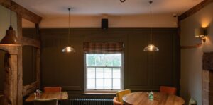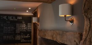 Recently, Fritz Fryer provided lighting for The New Inn, Herefordshire. The lights needed to reflect the cosy atmosphere of the interior – utilising warm coloured metal finishes and flex cable colours to enhance the inviting ambiance.