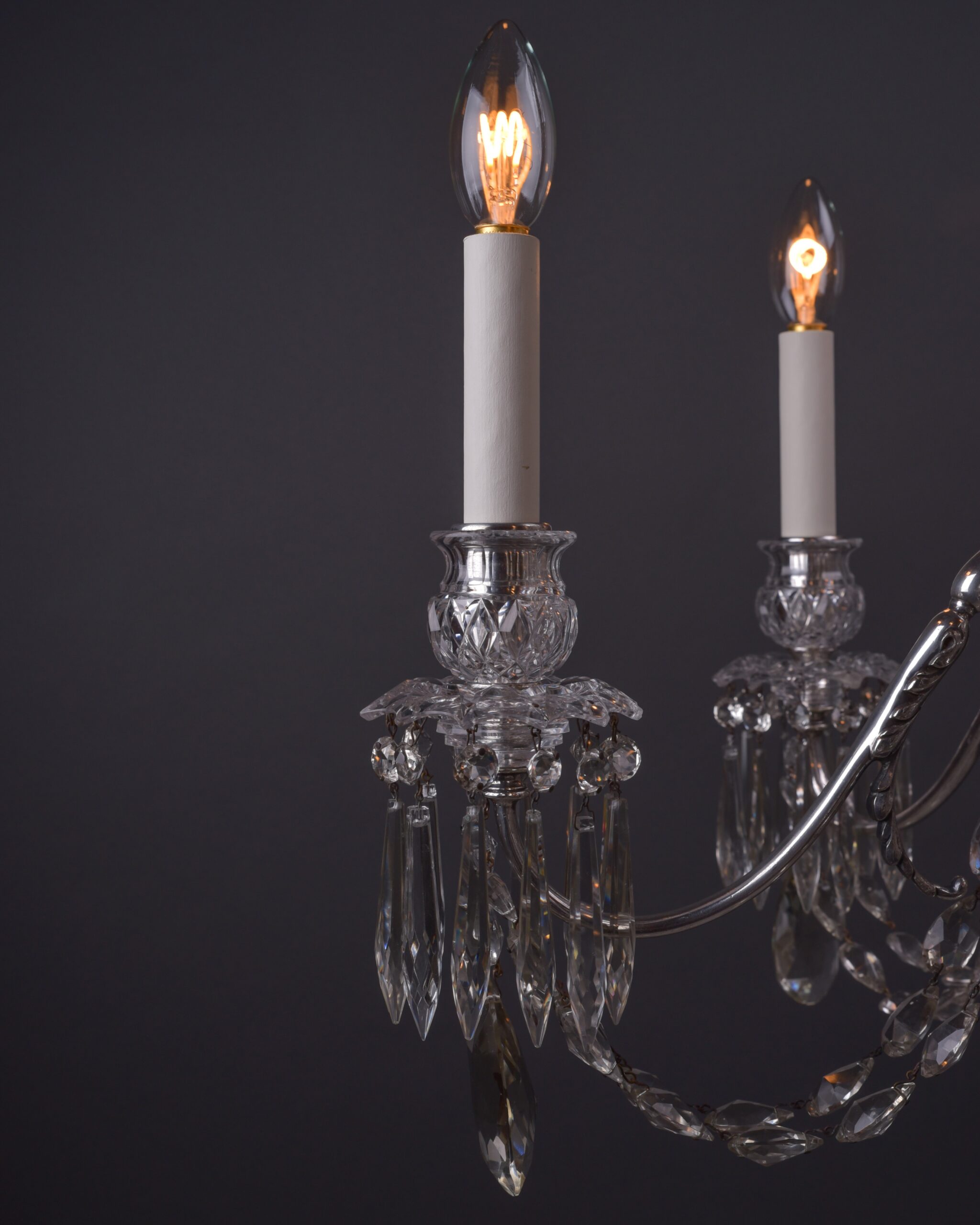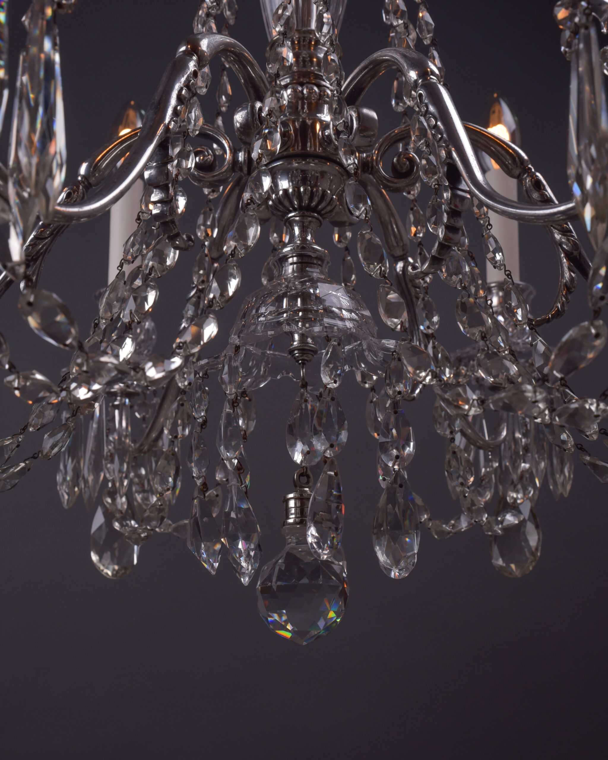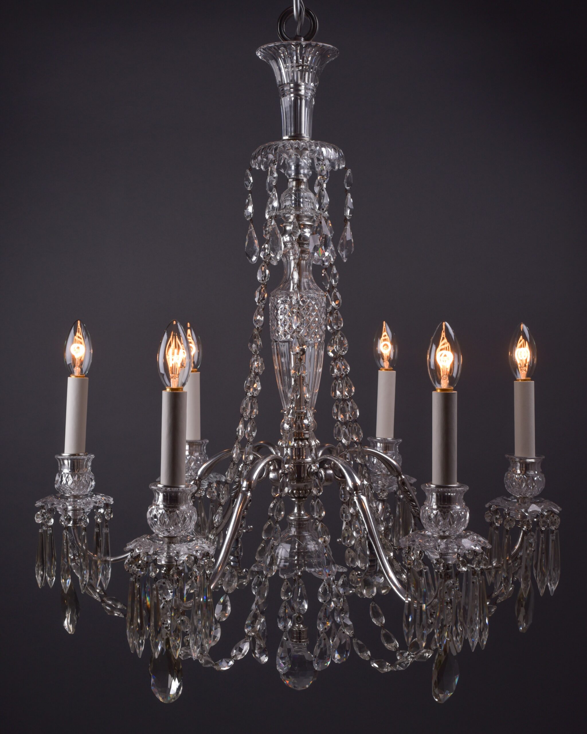 Osler 6 Branch Antique Crystal Chandelier with Silver Plated Arms