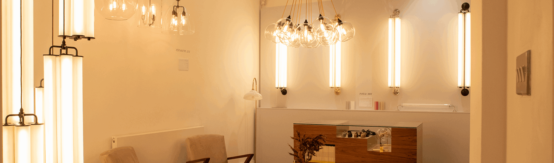 We welcome both commercial, trade and private customers to visit our showroom and meet with members of our team, to get a better understanding of the quality of our lighting and the authenticity of our business. The London showroom proudly displays a fantastic selection of our wall and ceiling lights, as well as a curated collection of antique fittings.
